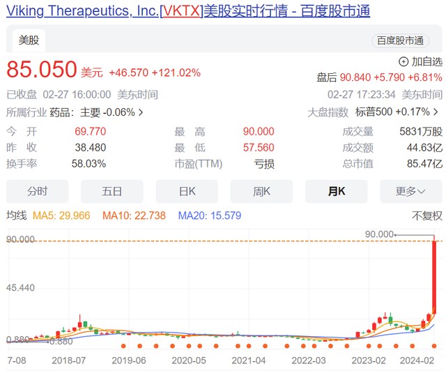 Viking 大漲 121%:GLP-1R/GIPR 肥胖二期臨牀,三個月減重 14.6 公斤