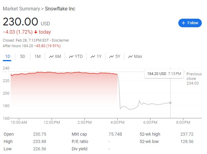 The CEO unexpectedly retired, performance guidance was weak, and cloud computing giant Snowflake plummeted 20% after hours.