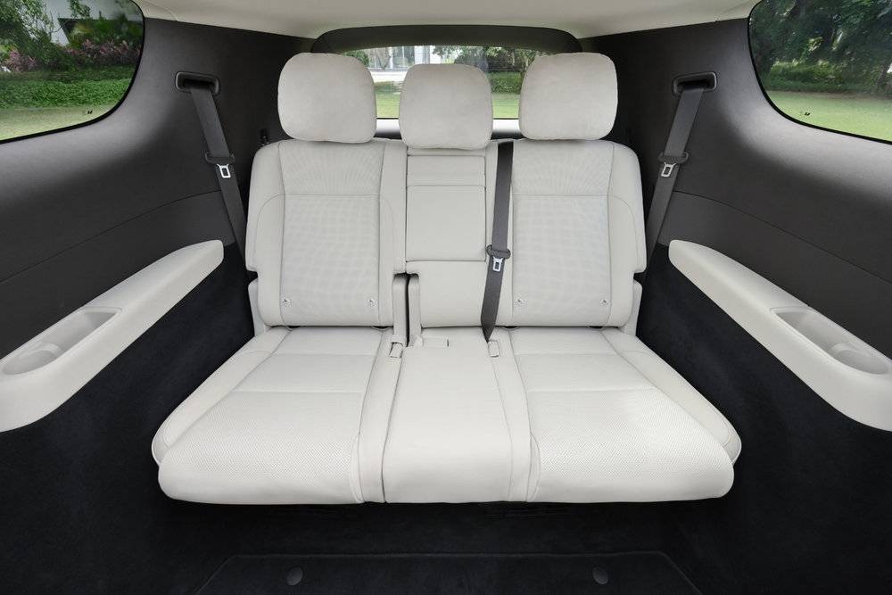 第二, 為了第三排乘坐的孩子不壓抑且 “坐得住”,MEGA 針對第三排的 “三人沙發” 進行了專門優化。其中,坐墊長度為 530mm,靠背高度為 613mm。尤其是座椅高度,達到了 350mm,比奔馳邁巴赫 S 級第二排還高。與此同時,第三排的座椅靠背最大可調節角度達到了 36°。