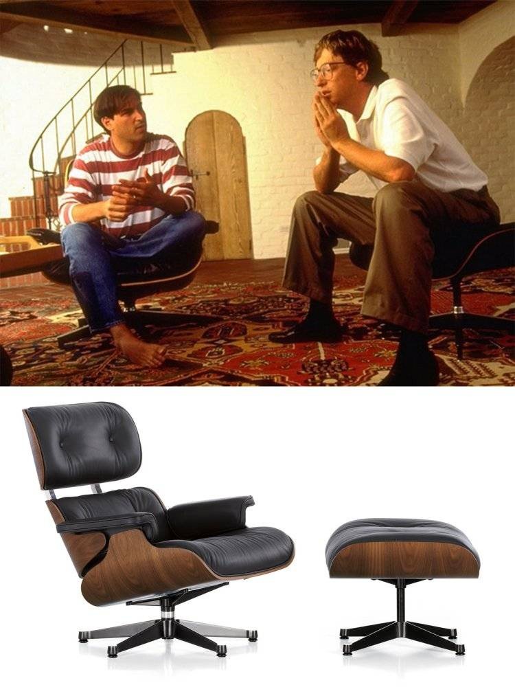 實際上,Eames 設計思路的影響力並不僅限於傢俱行業,其還深深影響到了科技行業。在這張史蒂夫·喬布斯和比爾·蓋茨的經典合影中,兩個人就共享了一個 Eames 最著名的休閒椅組合。