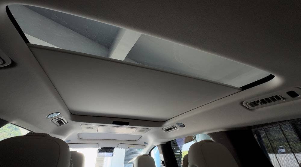與此同時,車輛的大尺寸天窗也延伸到了第三排乘客頭頂。事實上,為了讓第三排乘客不至於感覺太壓抑,理想 MEGA 的遮陽簾是從後向前開啓的,這就優先照顧了前者的體驗。