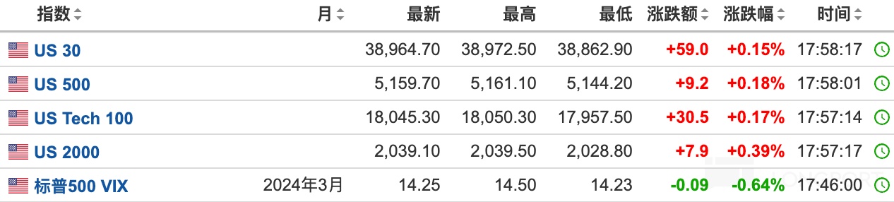 美股盤前,三大股指上漲,恐慌指數下跌。