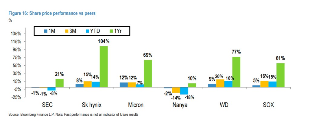 摩根大通表示,HBM 執行進展和 DRAM 利潤率與同業之間的差距縮小,是三星電子股價表現超越同業的關鍵前提。