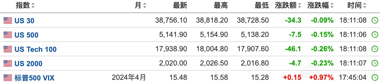 美股盤前,三大股指期貨下跌,恐慌指數上漲。