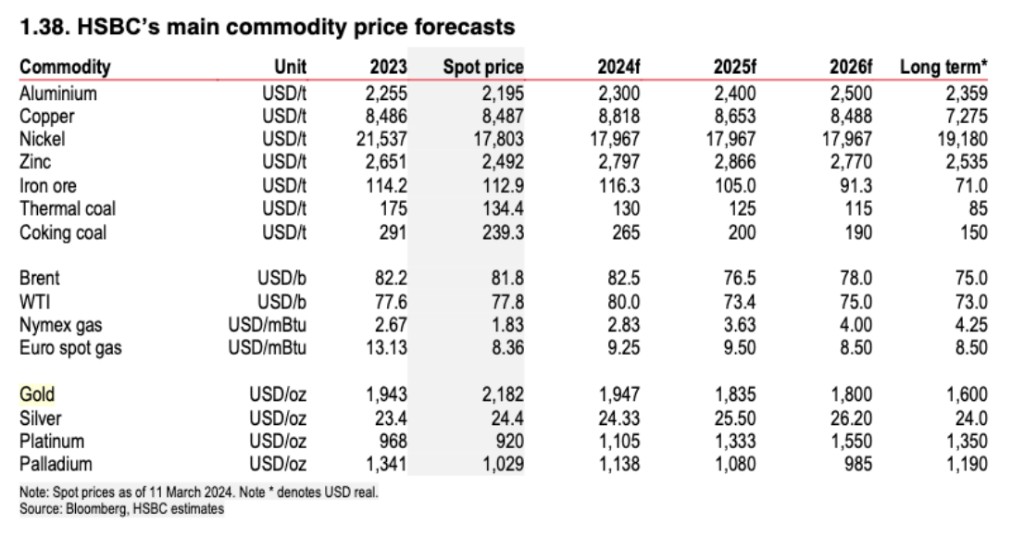 滙豐強調,黃金價格容易受地緣政治風險的影響,被視為 “避險” 資產的黃金或在關鍵的選舉年走強,但美元不會在 2024 年不會持續疲軟,這可能給金價帶來下行壓力,預計金價在 2024 年將回落到 1947 美元/盎司: