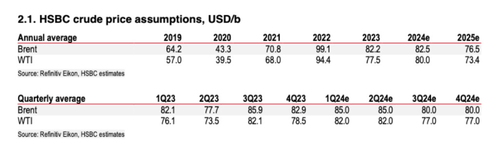 儘管 2023 年美國頁岩油產量增長,但地緣政治風險加劇和 OPEC+ 持續的供應限制成為油價保持高位的關鍵因素。滙豐銀行石油和天然氣團隊預計 2024 年的大部分時間裏,全球石油市場將持續處於明顯的供應短缺狀態,主要原因是 OPEC+ 對於原油供應的限制。