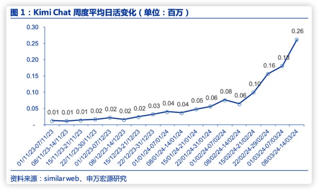多次迭代後伴隨着 Kimi 用户活躍度提升,2 月平均日活同比上升 101.9%,3 月前二週繼續攀升。