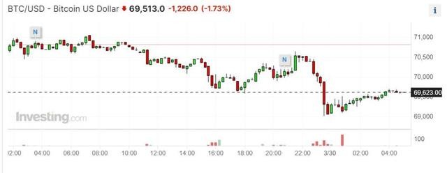 比特幣盤中跌破 7 萬美元 3 月仍漲超 10%