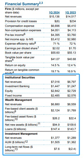 “由於強勁的淨新增資產增長,公司在財富和投資管理領域的客户資產已達到 7 萬億美元。機構證券也看到了整個市場和承銷業務的實力。摩根士丹利的綜合公司模式正在展現出持久的影響力。”