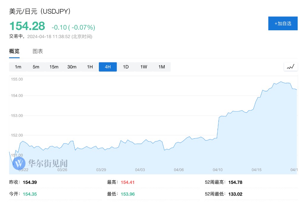 美聯儲降息預期一降再降,美日利差攀升,美元兑日元本週連續創下 1990 年來新高,截至發稿,美元兑日元匯率為 154.28,較年初下跌 9%,市場對日本央行再次進場干預正持續升温。