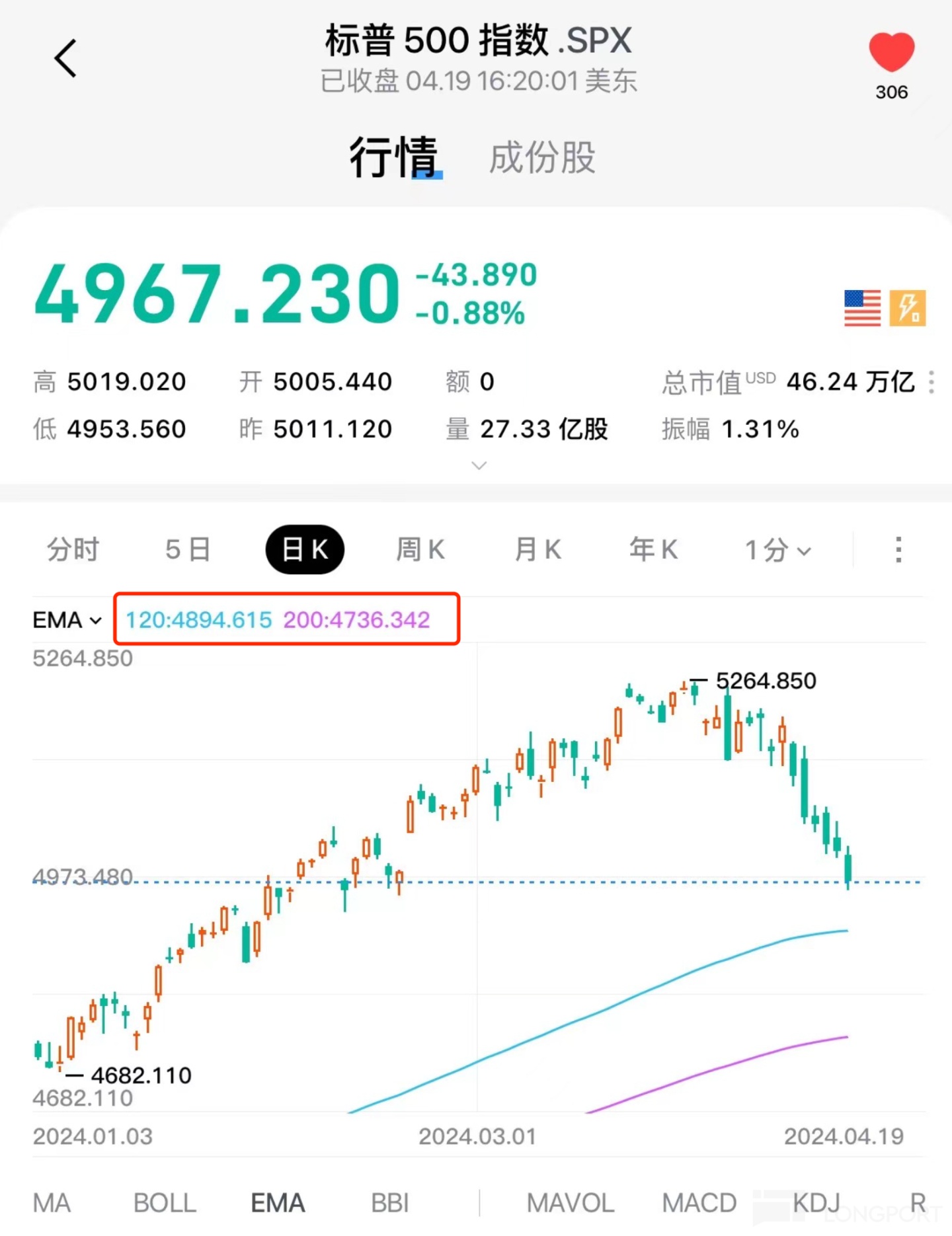 標普 500 連續三週收跌,已經確認回撤格局。我們上週提示到:標普 500 到達 5050 以下開始緩慢加倉。本週,標普 500 收於 4967 點,已經進入我們推薦的加倉點位範圍。