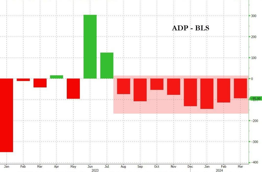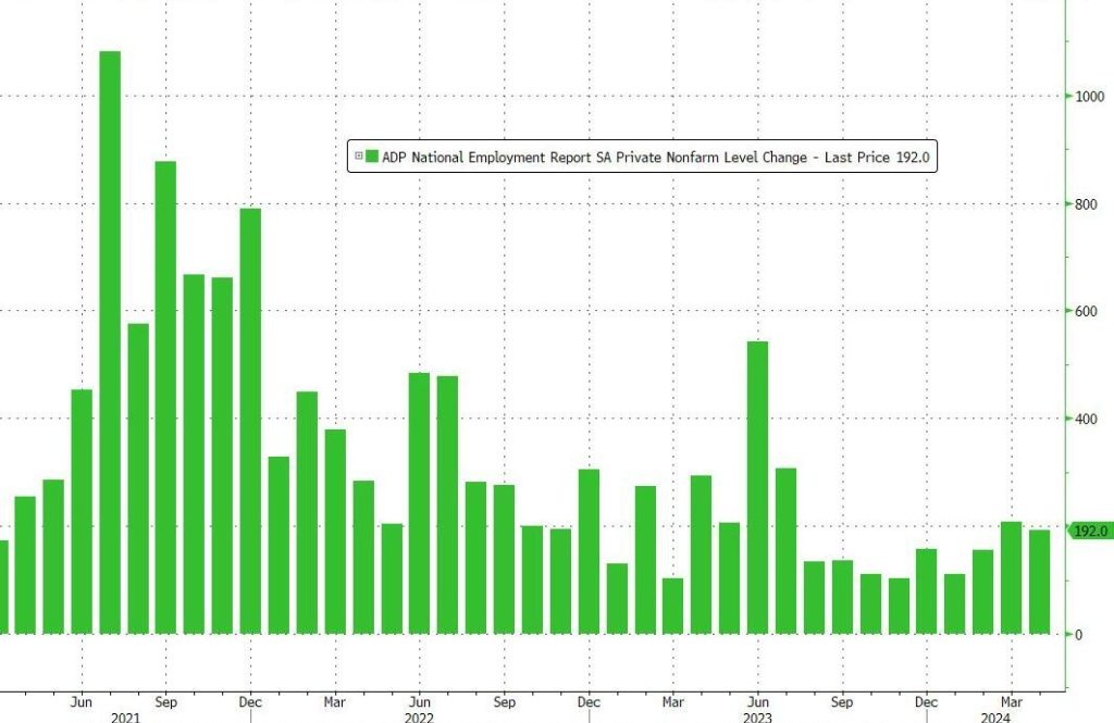財經金融博客 Zerohedge 點評稱,美國 4 月 ADP 就業數據依然強勁,在這種勞動力市場的情況下,美聯儲能否維持今年某個時候降息的幻想呢?