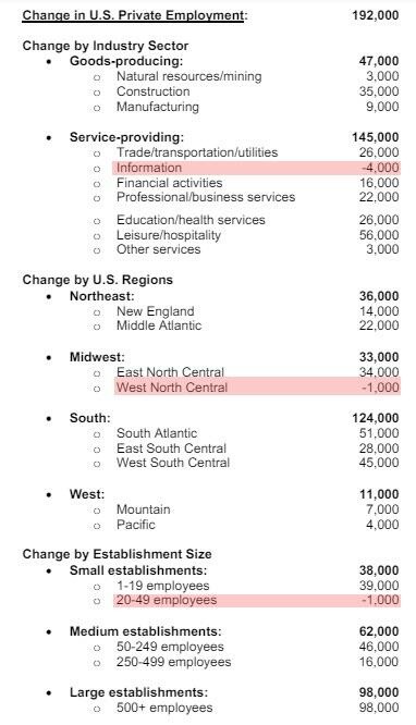 ADP 數據發佈的時間比更受市場密切關注的美國非農就業報告早兩天。近幾個月來,ADP 的數字一直低於非農報告的數字,已有連續八個月如此,儘管 3 月份時二者的數字相當接近:美國勞工統計局報告稱,3 月非農私人就業部分的人數增加了 23.2 萬人,而 ADP 數據是增加了 20.8 萬人。