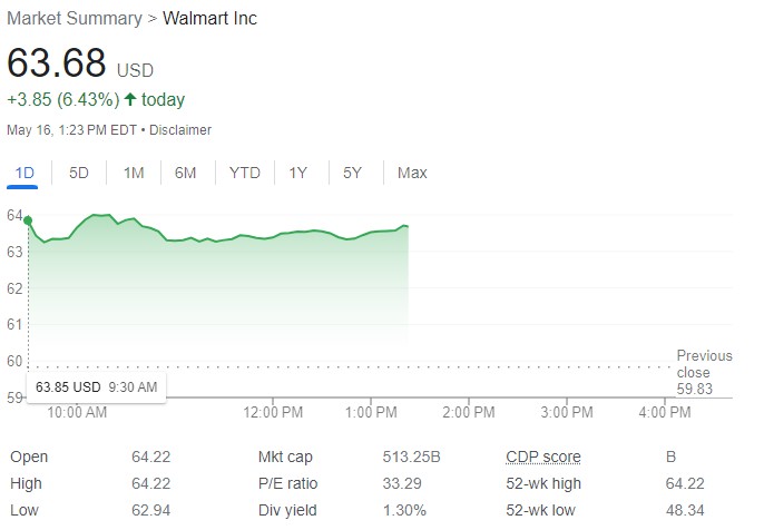 季報公佈後,沃爾瑪的股價盤中一度大漲 7.3%,為自 2022 年末以來的最大漲幅,推動公司股價創自上市以來的歷史新高。截至週三收盤,沃爾瑪的股價今年迄今為止已經上漲了 14%,超過了同期標普 500 指數 11% 的漲幅。