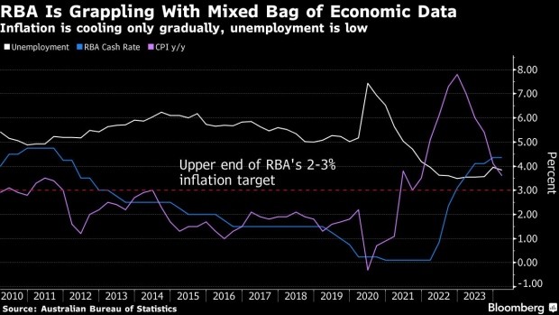 自澳洲聯儲上次會議以來,數據顯示澳大利亞經濟明顯放緩,人均 GDP 萎縮,而不温不火的零售銷售反映出低迷的消費者情緒。頑固的通貨膨脹和高借貸成本是主要原因。與此同時,勞動力市場仍然緊張,失業率為 4%,這讓政策制定者樂觀地認為,他們可以實現軟着陸。