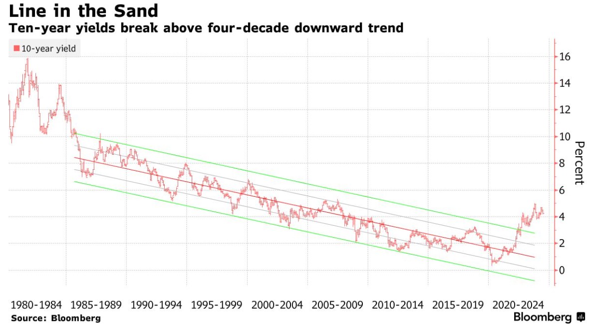 目前,投資者的情緒正變得越來越樂觀。截至上週五,彭博衡量美國國債收益率的指標在 2024 年僅下降了 0.3%,而在低點時,該指標全年跌幅高達 3.4%。基準國債收益率較 4 月份創下的年內迄今高點下跌了約 0.5 個百分點。
