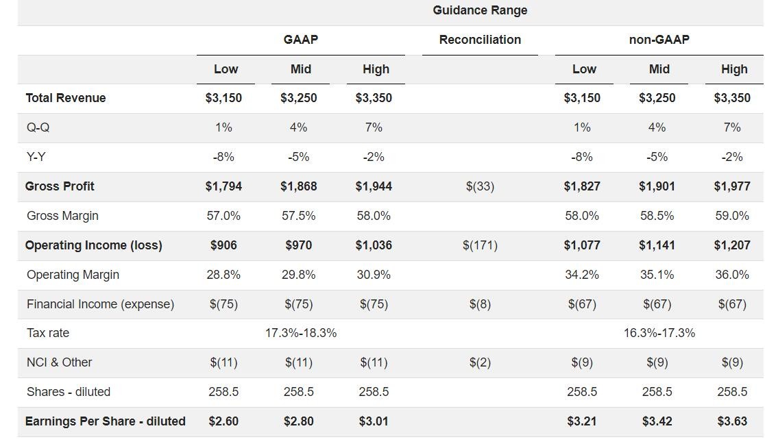 GAAP 口徑下,三季度稀釋後每股盈利(EPS)為 2.60 至 3.01 美元,同比零增長或下降 13.6%,整個區間都低於分析師預期的 3.09 美元。