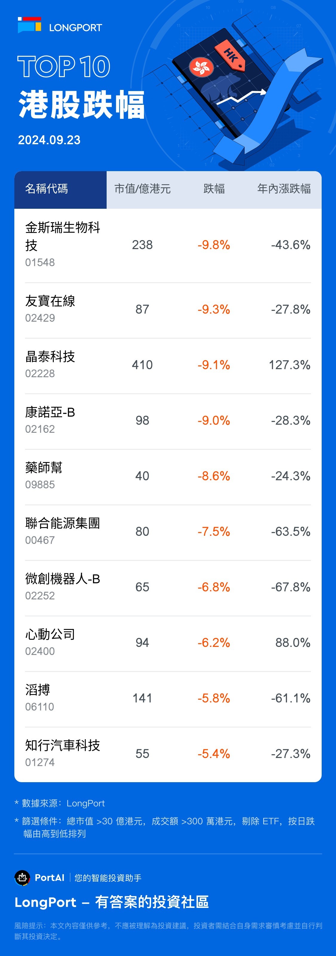 Top 10 HK Stock Losers (9.23)