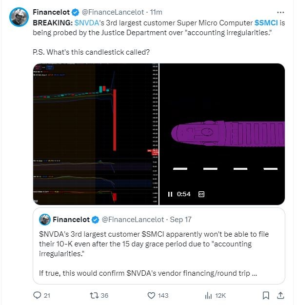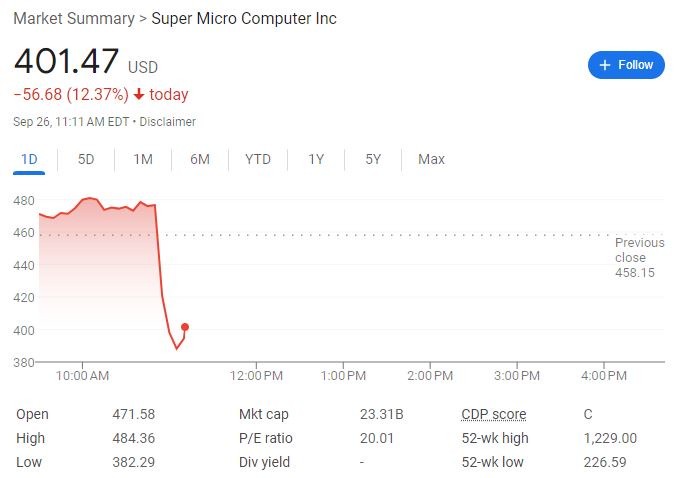 9 月 26 日週四美股午盤前,據華爾街日報獨家報道,在興登堡研究公司(Hindenburg Research)發佈了做空報告之後,美國司法部正調查 “AI 妖股”、服務器製造商超微電腦,調查處於初步階段。