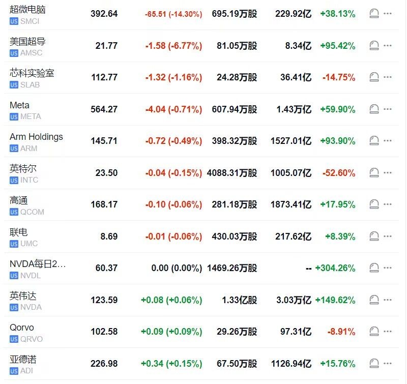 當超微電腦恢復交易後,其股價跌幅最深擴大至 18.6%,創近一個月最大跌幅,且逼近 9 月 6 日所創的八個月低位。熱門芯片股也紛紛跳水,英偉達從盤初漲 3.4% 一度轉跌並跌 1%。
