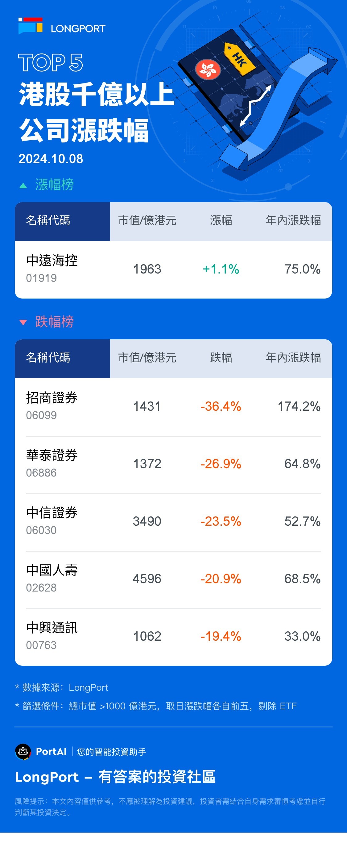 Top 5 HK Stock Gainers/Losers (>100B) (10.8)