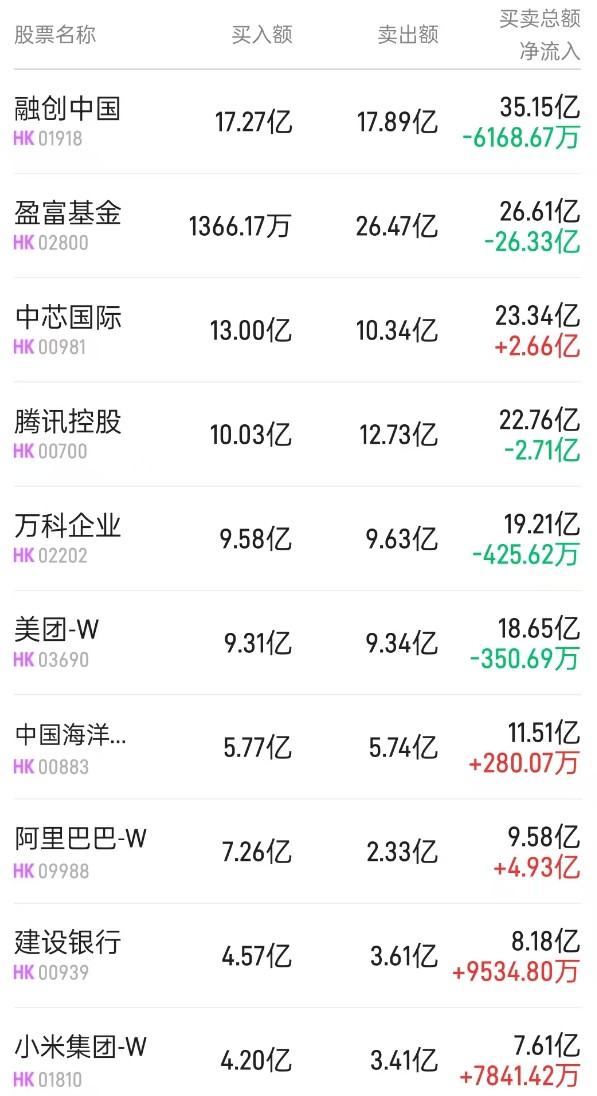 建设银行 (00939) 获净买入 9534 万港元。消息面上,近日,市场有传闻称,银行近期即将再度下调存款利率,最快将于本周公布。瑞银则表示,虽然贷款增长进一步放缓,但相信内银的净利息收入跌幅会因为行业层面的净息差企稳而收窄,同时交易和投资收入亦有望在第三季保持稳健增长,预计平均按年增长 30.4%,憧憬内银下半年盈利前景可改善。