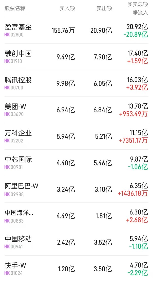 10 月 16 日,港股市场北水成交净卖出 15.46 亿港元,其中港股通 (沪) 净卖出 22.98 亿港元,港股通 (深) 净买入 7.52 亿港元。阿里巴巴-W、 中海油和中芯国际为净买入个股,盈富基金和中国移动为净卖出个股。阿里巴巴重获加仓,净买入 5.07 亿港元。高鑫零售董事会接获要约人接触函,阿里巴巴可能从出售高鑫零售 73.66% 股份中获利 16 亿美元。