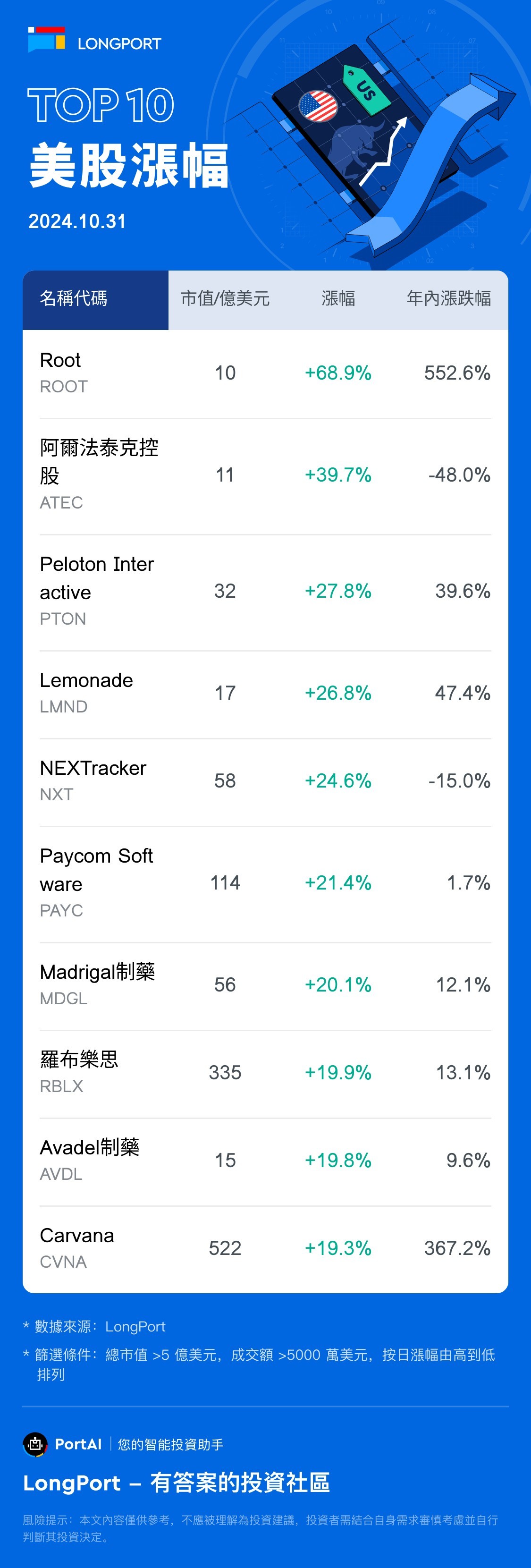 Top 10 US Stock Gainers (10.31)