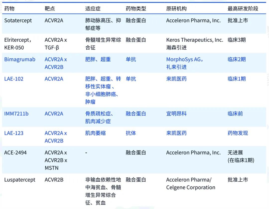 ActRII 通路中的重點藥物 據智慧芽