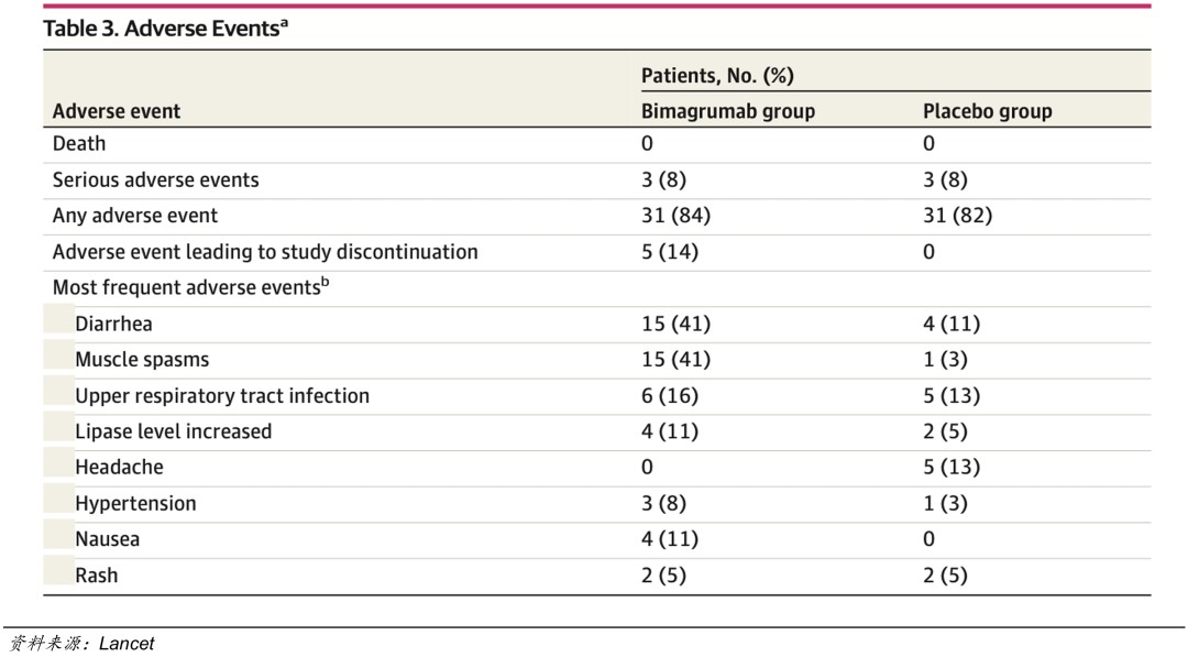 Bimagrumab 臨牀 II 期安全數據