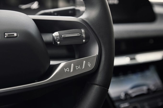 我很欣賞 Lucid 決定保留一些物理控制。Pilot Panel 上方有用於調節温度和音量的觸感旋鈕。方向盤上也有物理按鈕,用於啓動高級駕駛輔助系統、切換歌曲和激活語音助手。