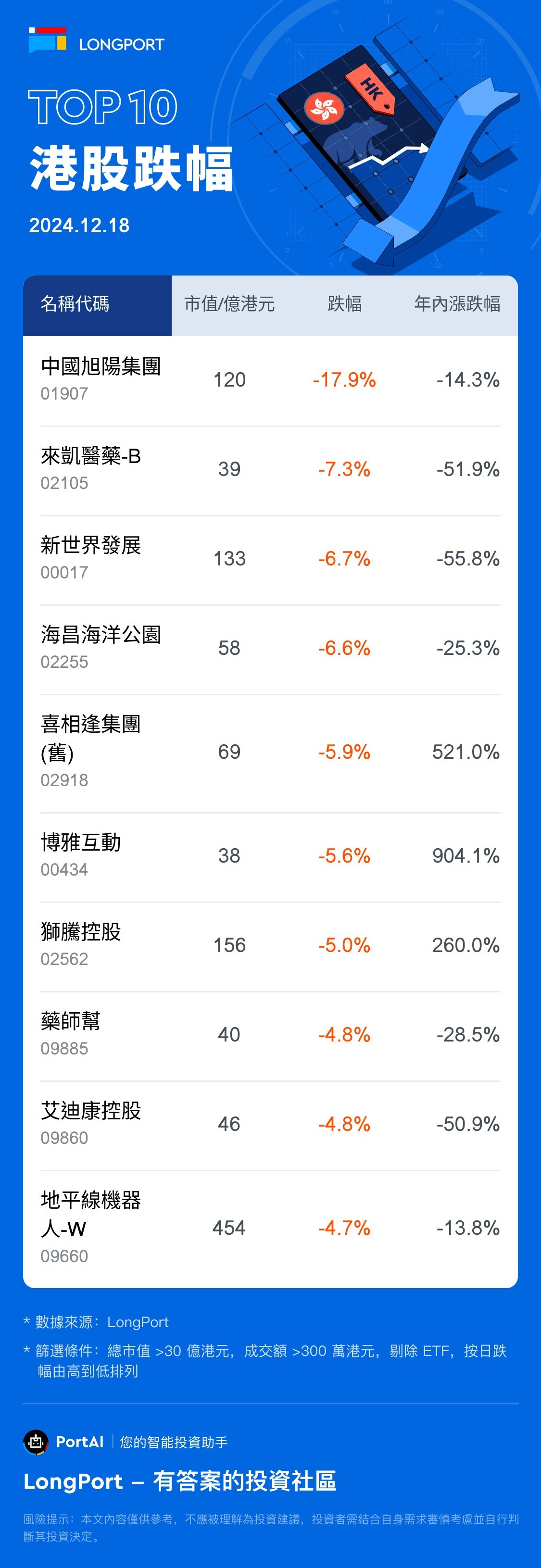 Top 10 HK Stock Losers (12.18)