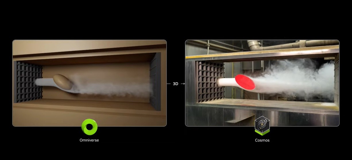 根本原因在于,Omniverse 是基于算法物理、原理物理、模拟构建的系统,是个模拟器。把它和 Cosmos 相连,能为 Cosmos 生成内容提供基准事实,控制、调节生成结果。