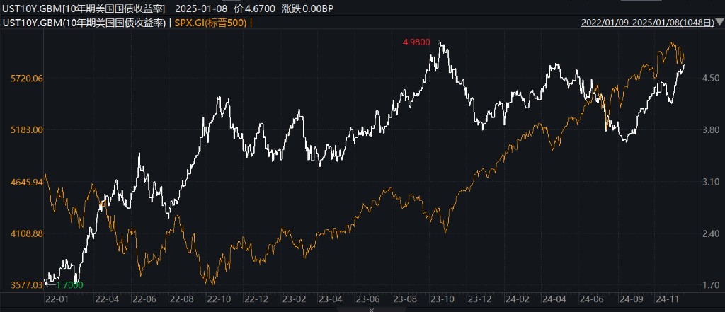 然而,本輪債券收益率上升中,股市僅出現輕微調整,這可能預示着如果收益率繼續上漲,股市還有進一步下跌空間。