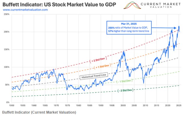 智通财经 APP 获悉,在美股市场跌宕起伏之际,财经分析师 Kevin George 发布评论文章,称当前科技股面临深度回调风险,从短期波动到长期风险皆需警惕。他指出,当前市场估值接近历史极值,且经济增速正在放缓,巴菲特指标显示市场可能存在泡沫,而中美贸易紧张、通胀波动、全球冲突,以及需求疲软下人工智能和云领域的过度资本支出等多重风险频发,因而建议投资者分散配置,远离增长型主题。