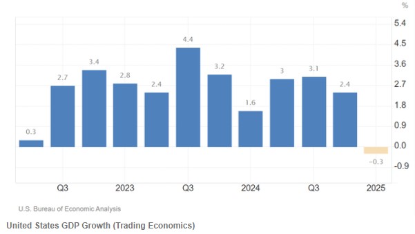 美国最新季度 GDP 增速为-0.3%,系 2022 年 Q1 以来首次负增长,在发达国家中表现垫底;欧洲最大经济体德国今年大概率陷入困境,在最佳情景预测中已面临停滞;叠加中国对美出口暴跌,甚至有进一步恶化的风险,企业级 AI 工具和硬件支出令人质疑。