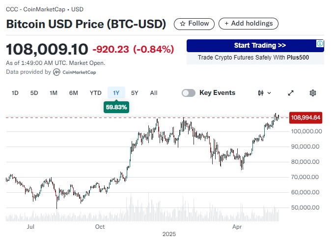 Over the past year, the price of Bitcoin has risen by approximately 60%.