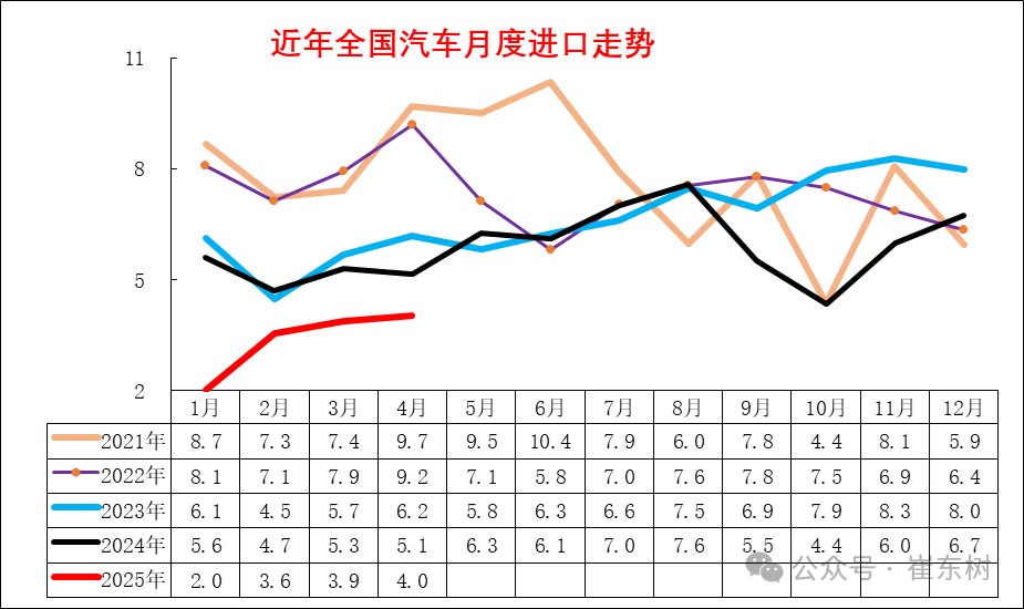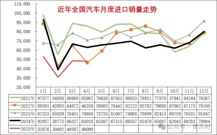Recently, international relations have become complex, leading to significant fluctuations in the scale of imported vehicles in 2025, with the effects of last year's overdraw still evident at the beginning of this year.