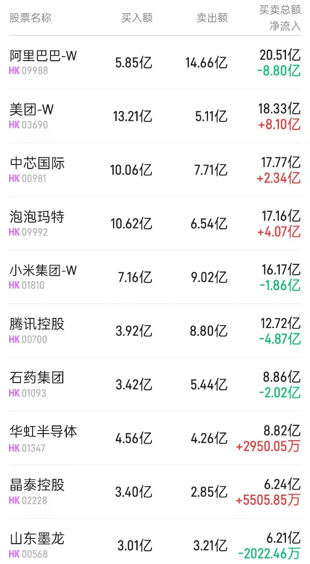 阿里巴巴-W(09988) 遭淨賣出 12.85 億港元。消息面上,阿里巴巴集團 CEO 吳泳銘 6 月 23 日發佈全員郵件宣佈,即日起,餓了麼、飛豬加入阿里中國電商事業羣。行業人士分析稱,過去兩個月,淘寶閃購協同各方展現出的業務潛力,促使阿里進一步堅定了加大投入、整合資源的決心。特別是即時零售領域,淘寶閃購與餓了麼將加強協同,全面打通各項資源。