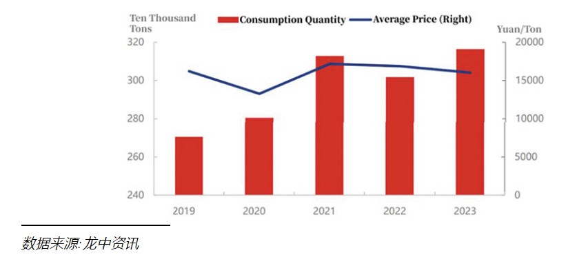 根據 Longzhong Information 的數據,2023 年,尼龍長絲的實物消費量約為 316 萬噸,從 2019 年到 2023 年,複合年增長率為 3.3%。2019 年至 2021 年,消費量的增加主要是由於下游紡織品產品的快速發展。然而,在後來的幾年中,增長速度放緩,這主要歸因於中美之間的貿易摩擦,影響了織物的出口,以及新冠疫情導致對紡織品的需求減少。