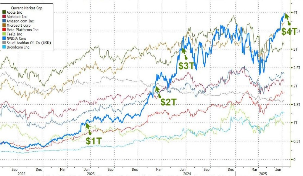 美股早盤,英偉達漲超 2%、股價創歷史新高,成為首家市值達到 4 萬億美元的公司。其他主要科技股多數錄得漲幅,幫助推動市場整體上漲,盤中納指漲超 1%,道指漲 0.7%,標普 500 指數漲 0.7%。