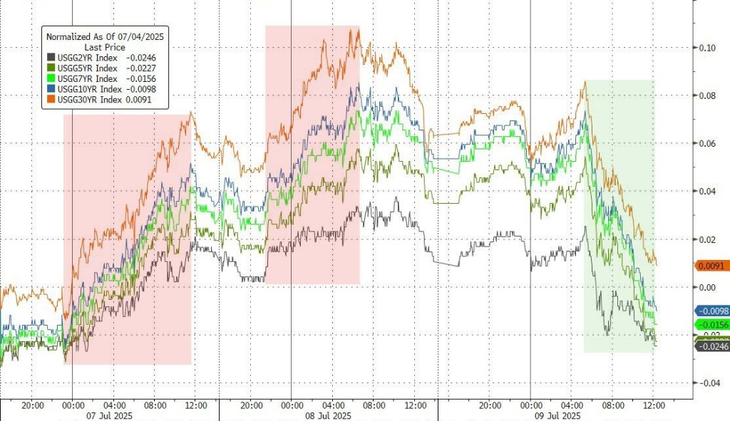 - 美股盤中,據央視新聞,特朗普在社交媒體平台上發佈了致文萊、阿爾及利亞、摩爾多瓦、伊拉克、菲律賓和利比亞的信件。美股早盤走勢一度受挫、漲幅收窄。