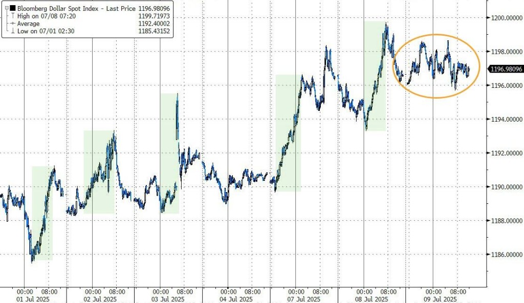 彭博美元指數跌近 0.01%,報 1196.55762 點,日內交投區間為 1195.65-1198.65 點。