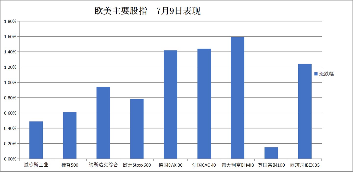歐股集體收漲,德國 DAX 30 指數收漲 1.42%,盤中創歷史新高。