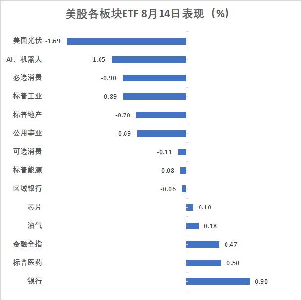航空業 ETF 收跌超 1.2%,領跌美股行業 ETF,全球科技股指數 ETF、科技行業 ETF、網絡股指數 ETF、可選消費 ETF、能源業 ETF、區域銀行 ETF、銀行業 ETF 至多跌 0.27%,生物科技指數 ETF 則收漲 0.12%。