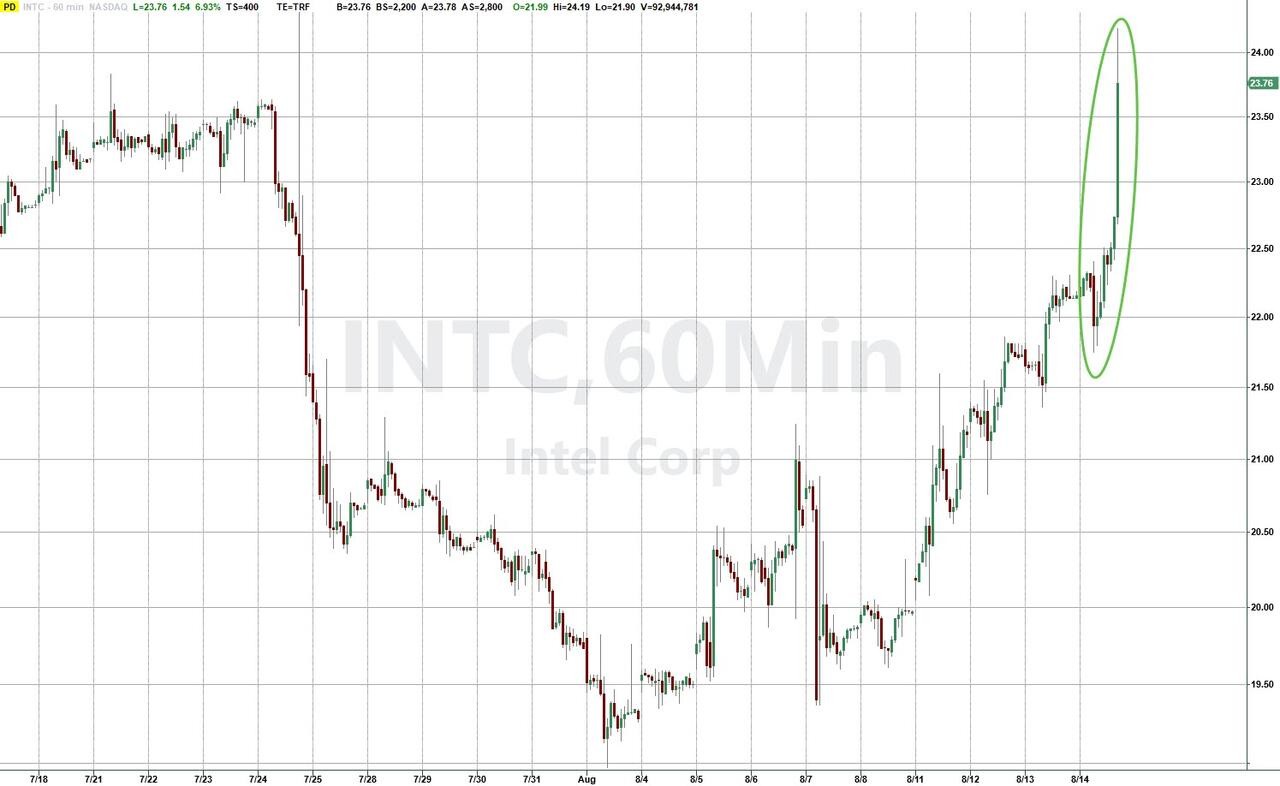 美股尾盤,媒體稱特朗普政府討論對英特爾實施國家持股,英特爾股價拉昇,漲幅一度接近 9%,收漲超 7%,三大美股指均曾轉漲。