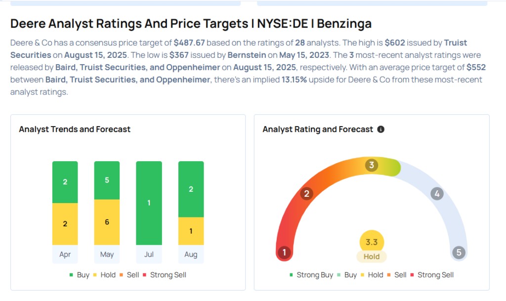 - Truist Securities analyst Jamie Cook maintained Deere with a Buy and lowered the price target from $619 to $602.