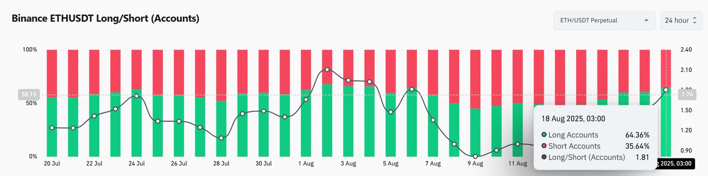 1.81 的多空比反映出交易者之間強烈的看漲偏好,他們預期進一步上漲。