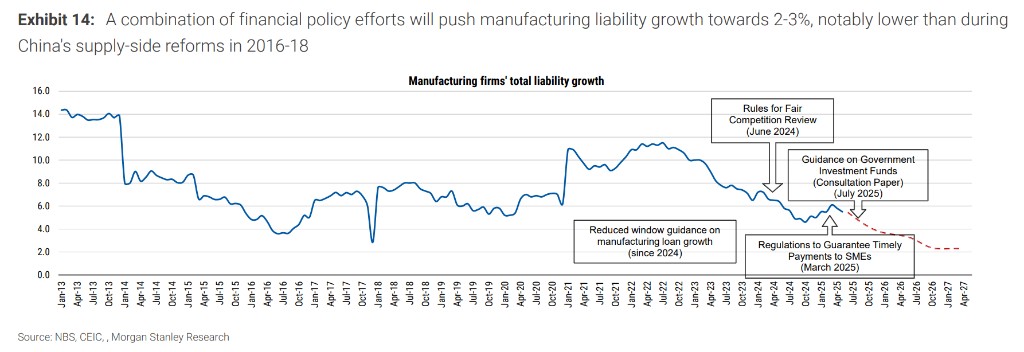 報告強調,反內卷努力中的新資金管控措施將有助於平穩消化剩餘的高風險金融資產。通過對 31 個子行業的評估,大摩預計銀行業需要在 2025-2027 年期間每年消化約 1.46 萬億元不良貸款,這一數字對銀行而言仍是可控的。