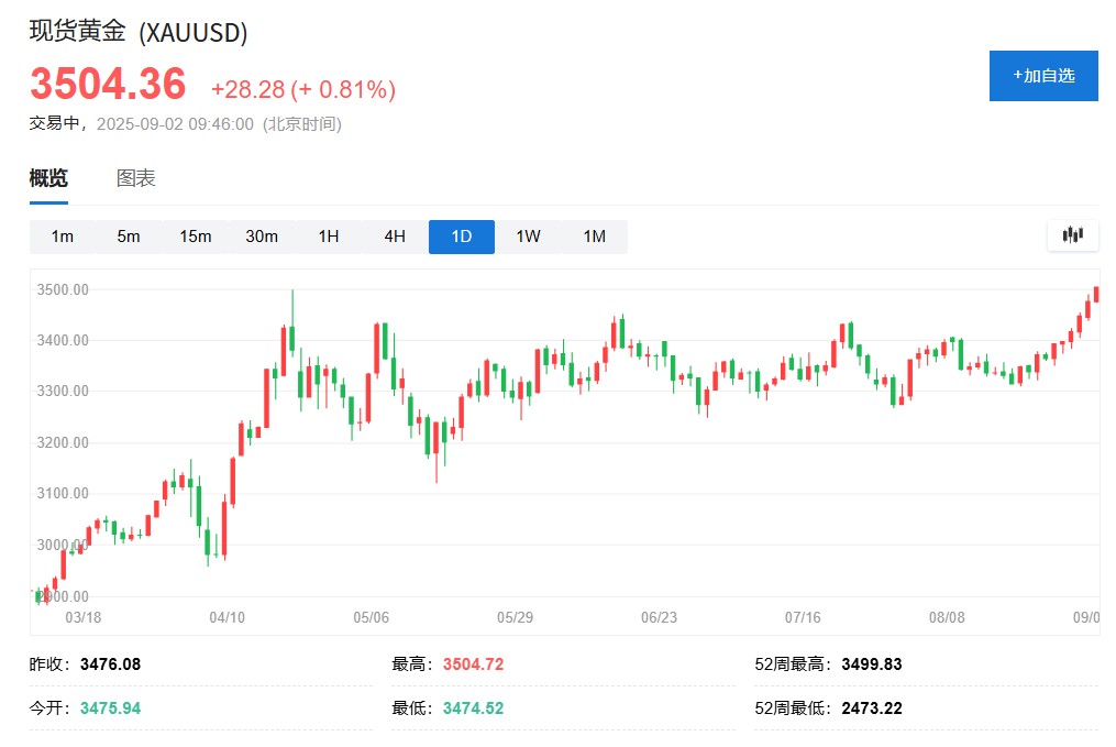 現貨市場上,現貨黃金今日盤中漲破 3500 美元關口,創歷史新高。與此同時,白銀價格也飆升至每盎司 40.76 美元的十四年高位。